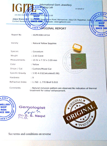 >> Take certificate of any international gems jewellery testing laboratory with every purchased gemstone.